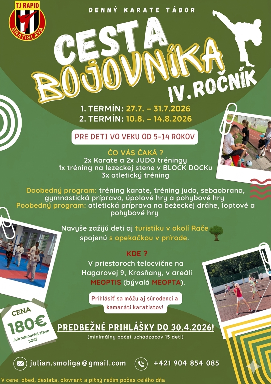© www.karaterapid.sk | Obsah webu je výhradným vlastníctvom Oddielu karate TJ Rapid Bratislava, Slovensko.